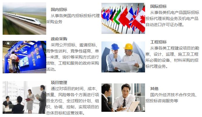 為各級(jí)政府部門、事業(yè)單位、大型企業(yè)等提供貨物、服務(wù)以及工程的招標(biāo)代理服務(wù)。