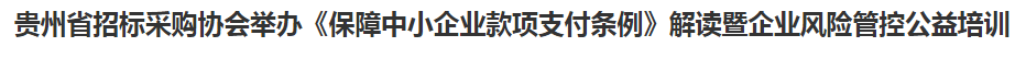 2020年9月25日,貴州省招標采購協(xié)會在貴陽市嘉華酒店組織舉辦了《保障中小企業(yè)款項支付條例》解讀暨企業(yè)風險管控公益培訓。我單位積極參與了本次會議,認真聽取了會議內(nèi)容,對于會議上講述的《保障中小企業(yè)款項支付條例》,對優(yōu)化營商環(huán)境、維護公平競爭的市場環(huán)境,有了更深入的了解和學習。